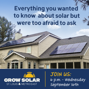 The Grow Solar St Louis group buy period has closed. Through this program, home and business owners throughout the Gateway region were able to learn about solar and pool their buying power to secure significant discounts that made installing solar more affordable.